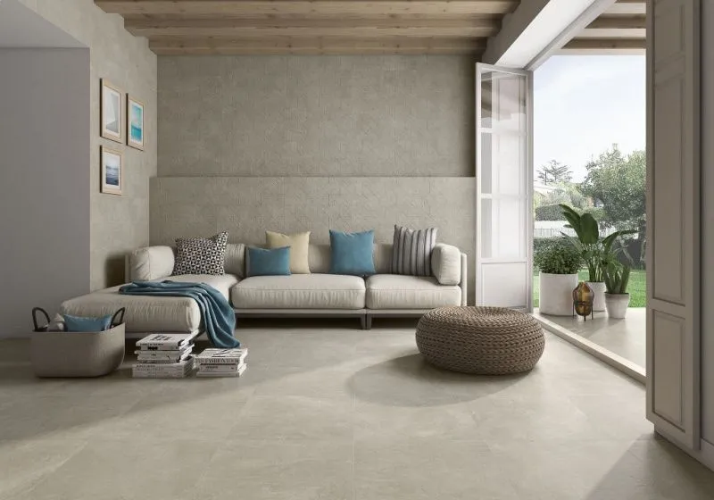При всей своей техничности облицовочные покрытия должны органично вписываться в стилистику интерьера и дарить эстетическое удовольствие, независимо от изменчивости модных тенденций. Оптимальным вариантом станут модели в имитации бетона, например, из коллекции Blending.