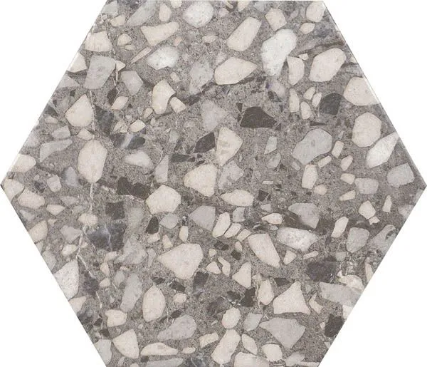 Керамогранит из коллекции SIX - идеальное решение для оформления интерьера в любом пространстве. Ее можно использовать на улице и для отделки фасадов. Ключевые характеристики: Бренд: Durstone; страна производства: Испания; форма плитки: шестиугольник (соты), размеры: 23x27, цвет: серый, рисунок: терраццо, применение: для ванной.