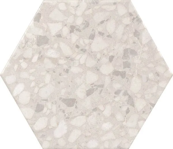 Керамогранит из коллекции SIX - идеальное решение для оформления интерьера в любом пространстве. Ее можно использовать на улице и для отделки фасадов. Ключевые характеристики: Бренд: Durstone; страна производства: Испания; форма плитки: шестиугольник (соты), размеры: 23x27, цвет: бежевый, рисунок: терраццо, применение: для ванной.