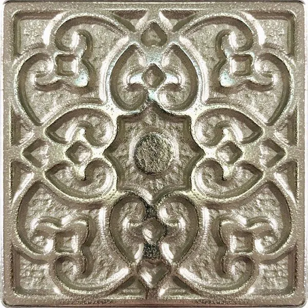 Металл из коллекции МЕТАЛЛИЧЕСКАЯ ПЛИТКА - идеальное решение для оформления интерьера в любом пространстве. Ее можно использовать на улице и для отделки фасадов. Ключевые характеристики: Бренд: Kavarti Bronceria; страна производства: Испания; форма плитки: квадрат, размеры: 5x5, цвет: серебряный, рисунок: с рисунком, применение: Array.
