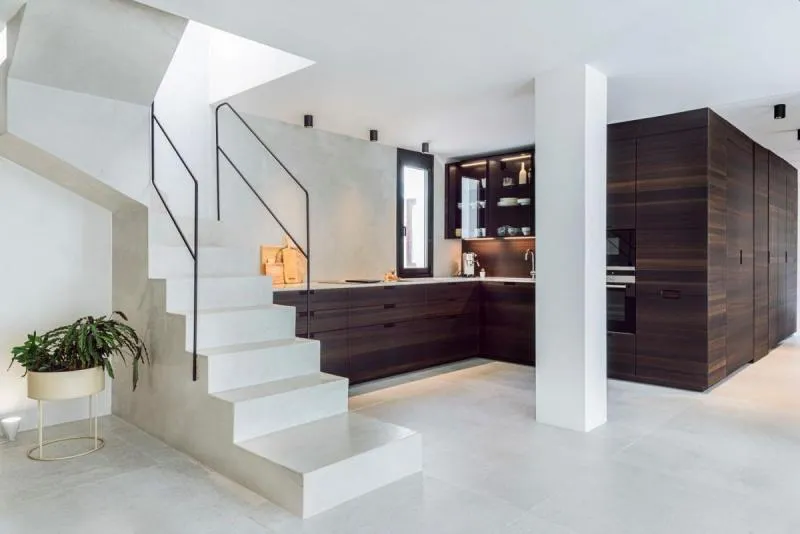 Двухуровневая квартира площадью 160 кв.м расположена в эксклюзивном месте в Санта-Крус-де-Тенерифе. В студии архитектуры Bolero Estudio разработали впечатляющий контраст материалов, цветов и эффектов за счет смешения деревянных покрытий кухни Rovere Termocotto насыщенного оттенка с цементом и мрамором.