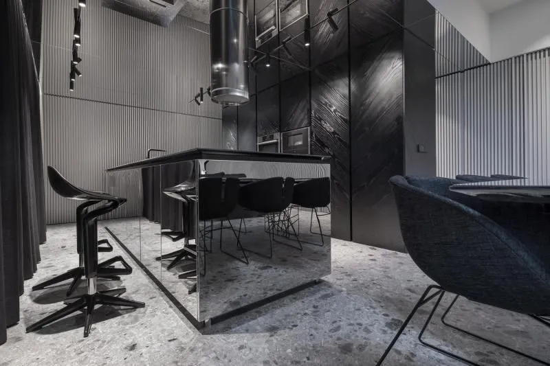 Проект дома Monochrome House в черном цвете и металлическим эффектом